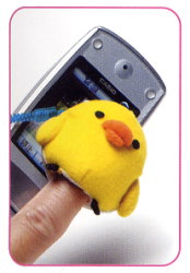 パペット部分に指を入れて携帯の画面が拭けるんだ!